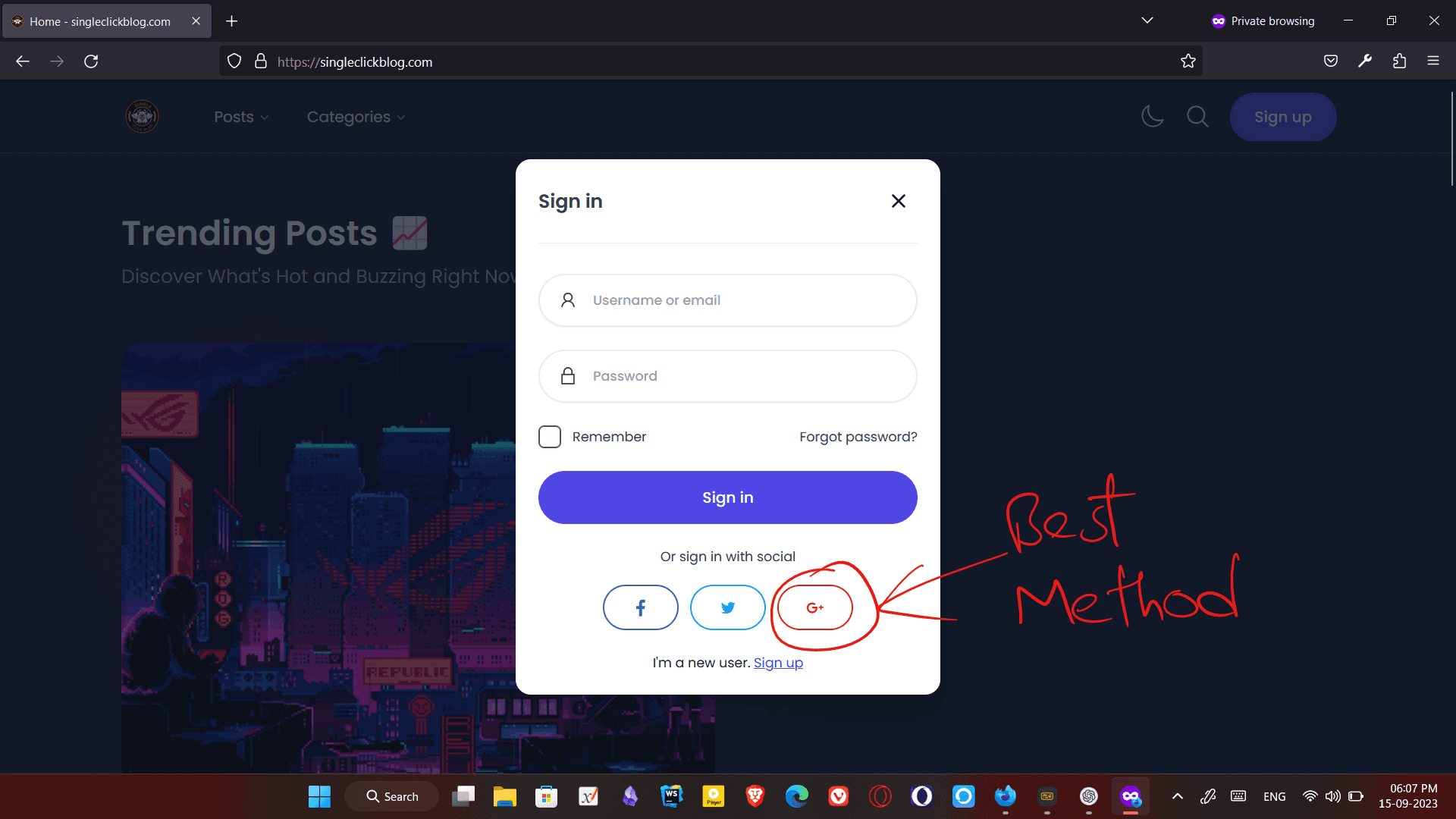 The Best way to Sign Up is through Google Sign up Button(Preferred Method)